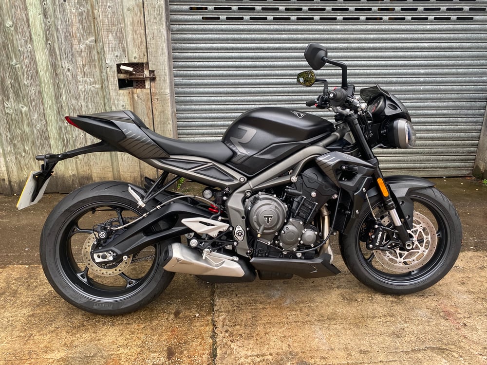 1 Owner Street Triple 765R, Factory Low Ride Height in Immaculate Condition with Only 929 Miles on the Clock.